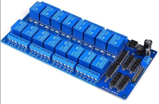 Relé modul nabízí až 16 oddělených kanálů. Když je některá relé aktivováno, zasvítí signalizační LED-ka.