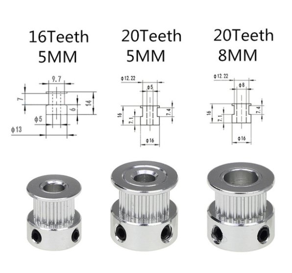 Hliníková rozvodová kladka, určená pro CNC nebo 3D tiskárny. Nasune se na hřídel motorku (obvykle krokového) a na zuby se umístí řemenice. Z nabídky lze vybrat: