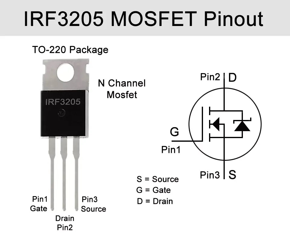 IRF3205 N-kanálový MOSFET výkonový 55V 110A, pro více informací doporučujeme prostudovat list. Vgs th = 2-4V