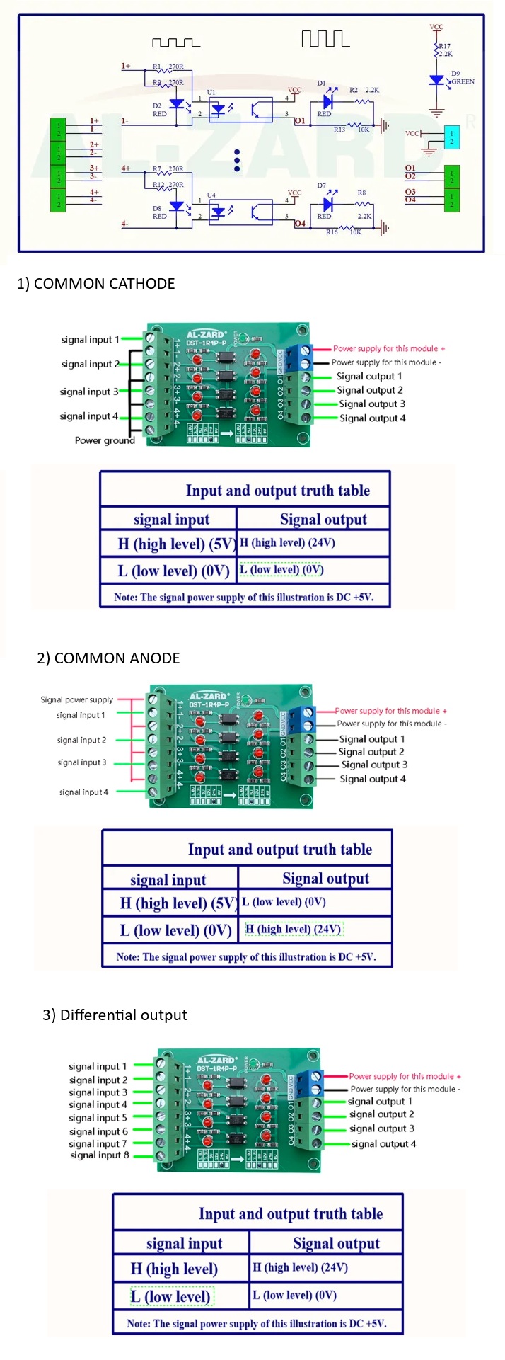 /Optocsatoló 3.3 V / 5 V / 12 V / 24 V leválasztó feszültség átalakítóval Jelátalakító modul többféle változatban