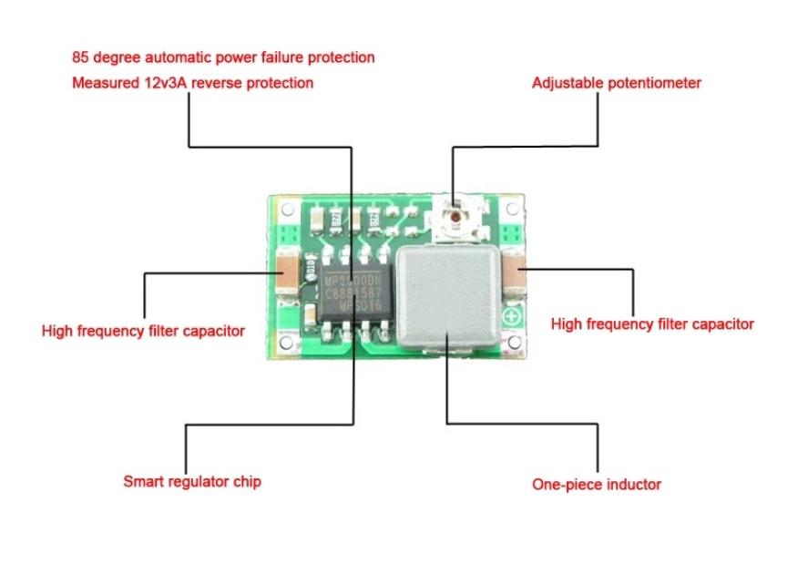 /Leléptető átalakító Mini-360 MP2307 3A Miniatűr lecsökkentő feszültségátalakító 4.75V-23V-tol 1.0V-17V-ig állítható